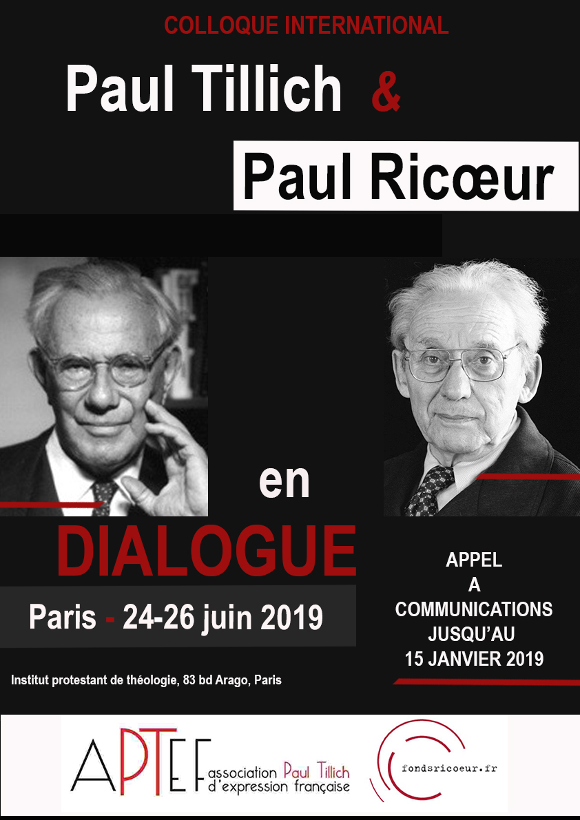 Le colloque « Paul Tillich et Paul Ricœur en dialogue » aura lieu à Paris les 24-26 juin 2019, à l’Institut protestant de théologie, 83 bd Arago, Paris.